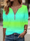 Women's Autumn Loose Design Ethnic Crew Neck Printed Zipper Long Sleeve POLO Shirt m301774