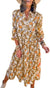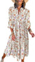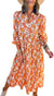 Loose long-sleeved V-neck women's bohemian floral elegant A-shaped dress m300573