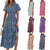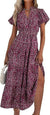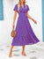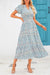 V-neck bubble pleated printed short sleeved dress m300104