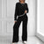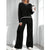 New fashion long-sleeved knitted top high-waisted wide-leg pants two-piece set m302090