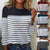 Long Sleeve Striped Two-Color Printed Splicing Crew Neck Top T-Shirt m300892