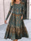 Crew Neck Long Sleeve Loose Geometric Pattern Printed Pendulum Dress m300700
