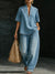 Casual retro denim V-neck short-sleeved trousers set m302511