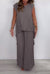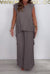 Crew neck solid color sleeve top pleated straight pants set two-piece set m301509