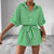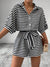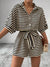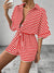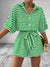 Striped lapel cardigan button medium sleeve belt shorts set onesie women's m301031