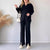 Women's solid color zipper knitted suit turtleneck pit strip loungewear two-piece set m301792