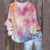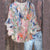 Creative floral element printing digital printing casual trend V-neck lotus edge T-shirt women's m301769