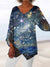 3D printing animal natural scenery V-neck nine-quarter sleeve loose T-shirt m301694