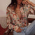 Casual summer new long-sleeved printed lapel shirt casual vacation women's shirt m301605