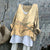Long-sleeved printed casual pullover loose round neck single-piece T-shirt (without under shirt) m301042
