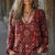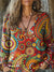 casual V-neck long-sleeved pullover loose digital printing women's top T-shirt m301736
