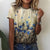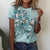 Women's T-shirt pink blue green flower print short sleeve m300912