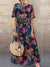 Long dress Amazon round neck casual women's retro floral print loose short sleeve m301972