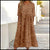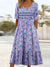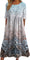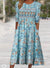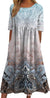 Ladies Casual Crew Neck Pullover Short Sleeve 3D Printing Pleated Waist Swing Long Dress Dress m301299