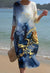Loose crew neck fashion high-end long-sleeved printed dress m301053