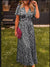 Temperament printed waist V-neck dress m301307