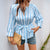 Spring and summer fashion versatile striped lace-up v-neck seven-quarter sleeve shirt m300836