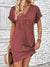 Women's Fashion Versatile Buckle V-Neck Shoulder Roll Sleeve Solid Color Dress m300945