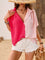 New fashion color matching cardigan buckle lead short-sleeved women's top m300998