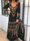 Temperament elegant long-sleeved dress autumn printing U-neck seaside vacation style long dress m300927