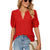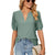 Casual v-neck solid color hollow bubble sleeves loose t-shirt top m300403