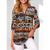 V-neck Zipper plus Size Women's Long Sleeve Rollable Sleeves Loose Shirt M300207